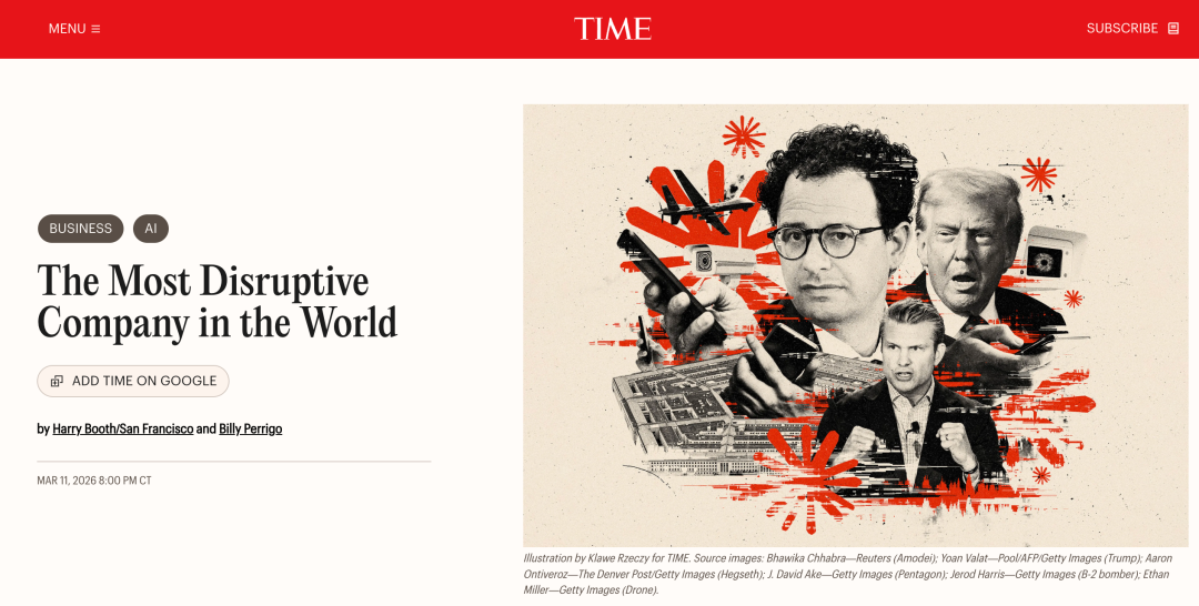 就在刚刚,Anthropic登上《时代》周刊封面,被评为世界上最具颠覆性的公司。