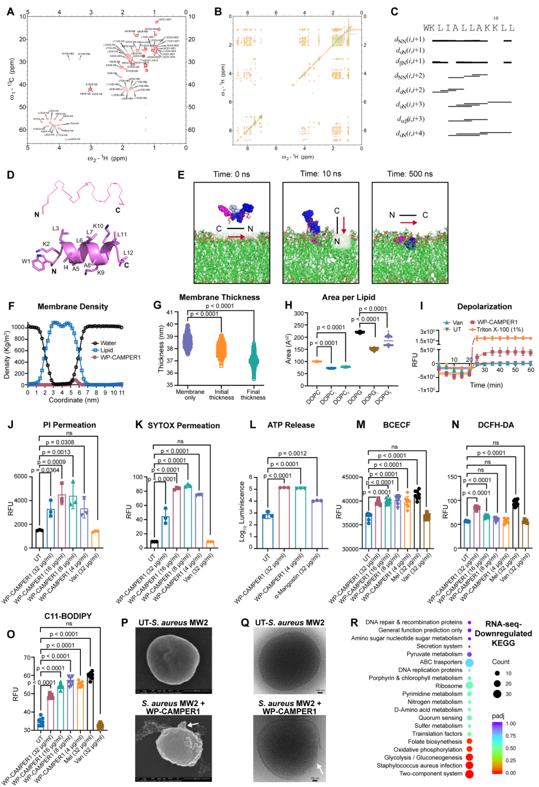 图4:WP-CAMPER1靶向细菌膜的结构与生物物理机制解析。