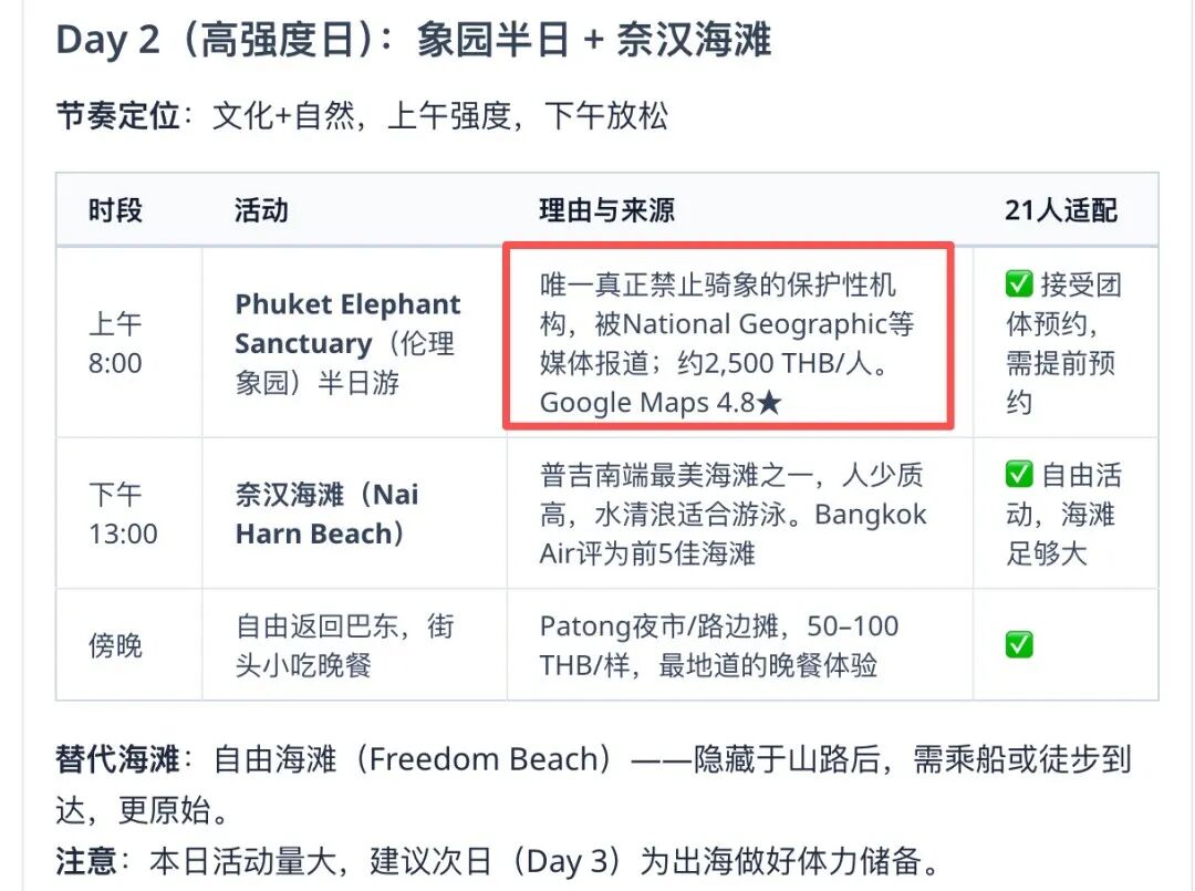 让我惊喜的一点是,我从未向它透露过我的内在倾向,但在制定行程时,它绕过了那些热门的传统骑象项目,优先给我安排了去这个象园,也是非常有人文温度了。