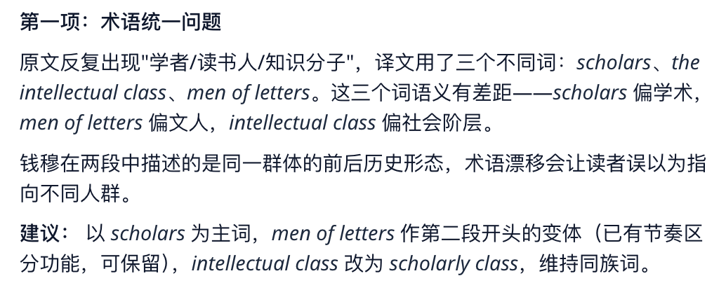 校审官在审查上也非常严谨,比如我在翻译时经常犯的错误——术语统一问题、逻辑断层这类问题,它也细心指出来了。