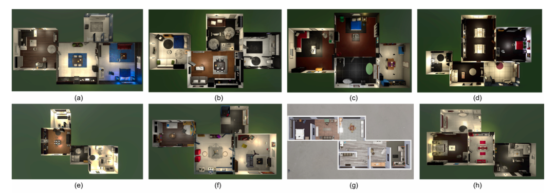整体上,数据集共包含590个样本、8种公寓布局、16个类人智能体(humanoid agents)。