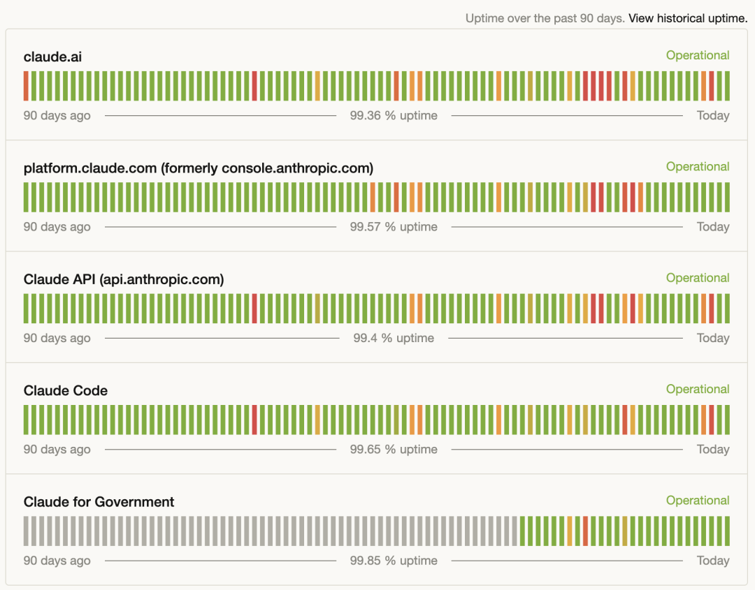 状态页拉满红灯,网页端和 Claude Code 统统连不上,响应慢得令人发指。