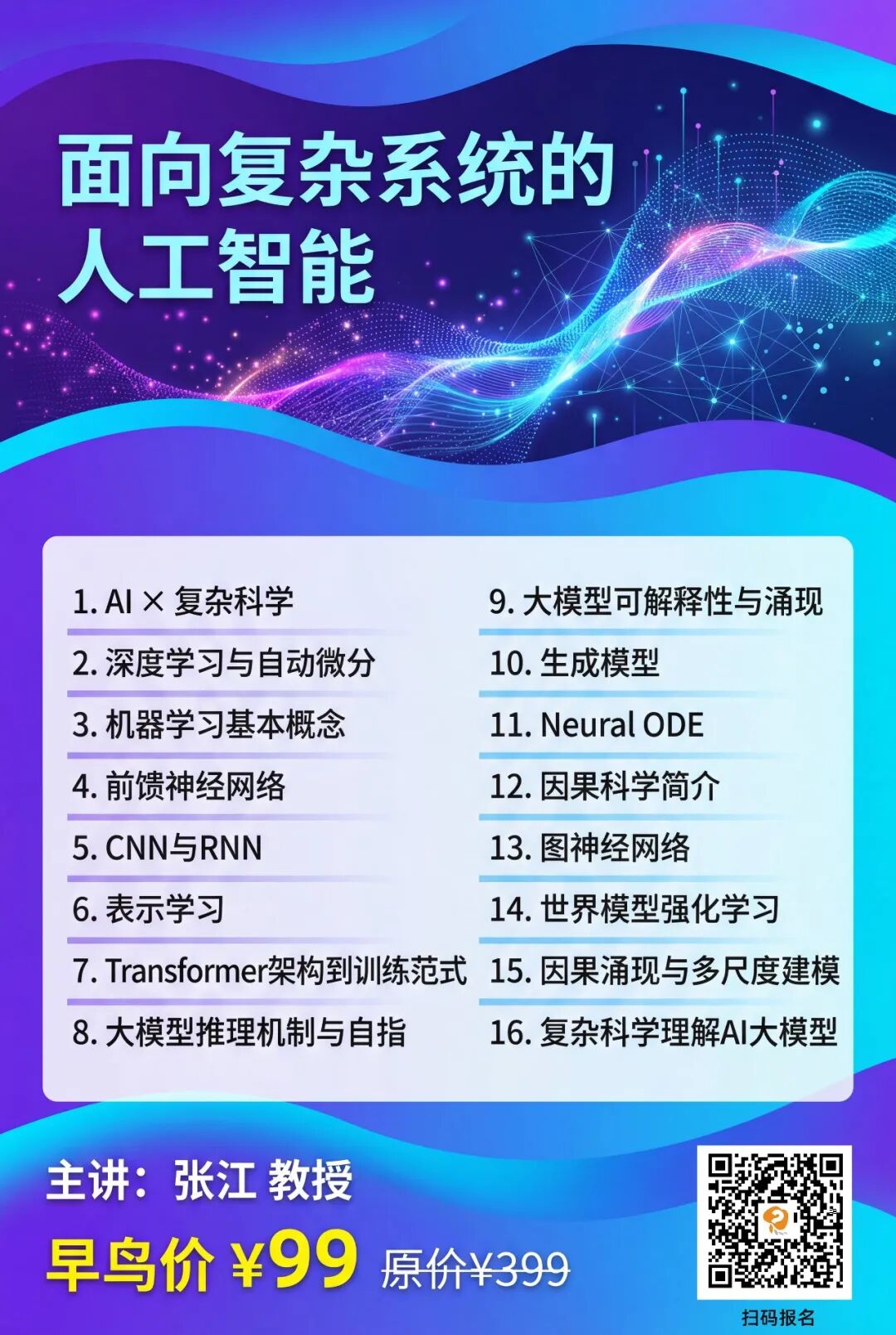 原价399元的课程,今天(3月16日)晚上24点前,早鸟价仅需 99元!只需两杯咖啡的钱,换来一整个春天与AI、与复杂系统的碰撞。