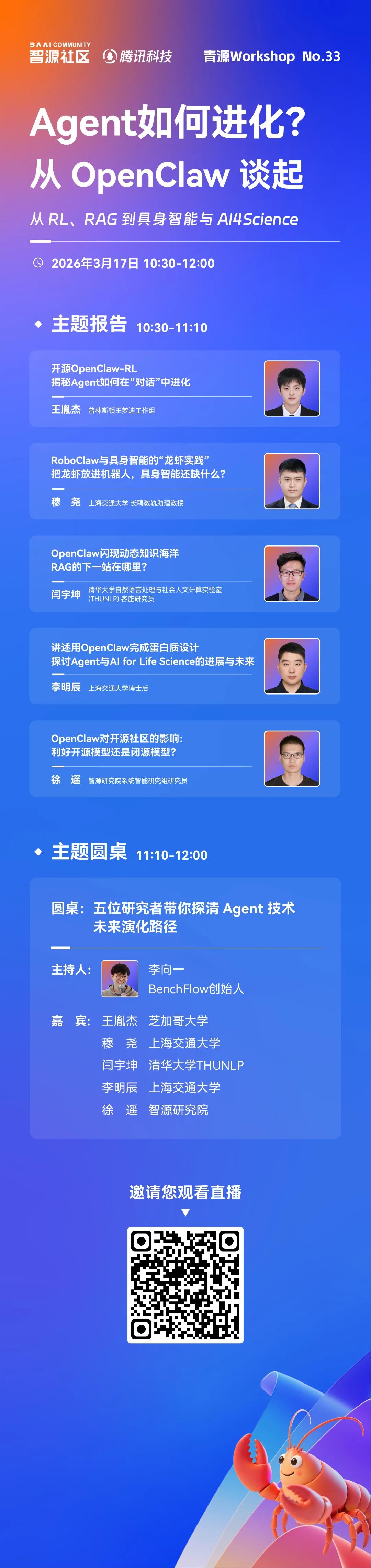 本期智源Workshop,我们特邀六位深度参与这场变革的学术工作者和探索者,以内行人的视角看OpenClaw现象,探路Agent未来发展趋势。