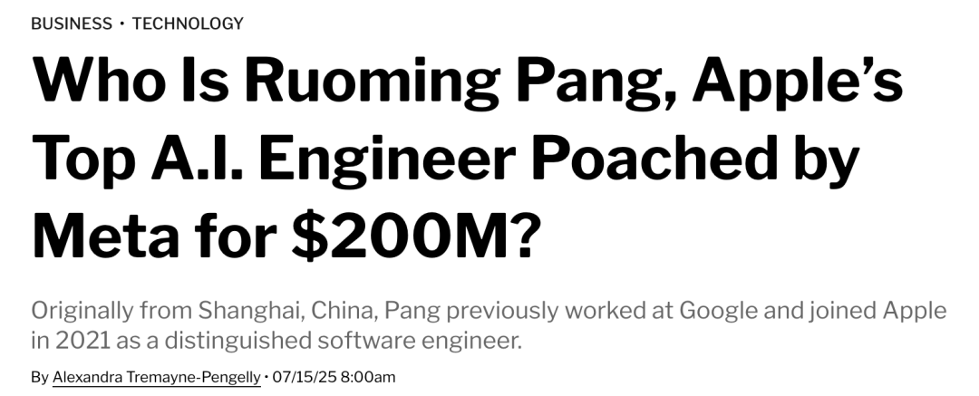 2025年7月,扎克伯格用两亿美元的多年薪酬包,将庞若鸣从苹果挖来,出任MSL(Meta超级智能实验室)的AI基础设施负责人。