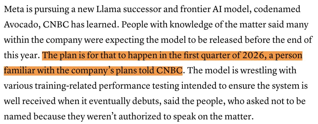 扎克伯格寄予厚望、几乎押上了整个AI战略的旗舰模型「牛油果」,原本计划在第一季度发布。