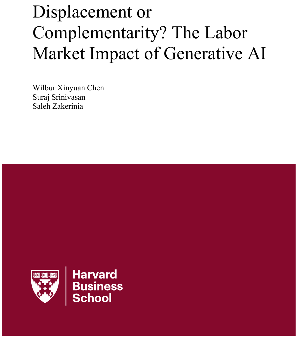 哈佛商学院教授Suraj Srinivasan联合香港科技大学和俄亥俄州立大学的研究者,发布了一篇重磅工作论文《替代还是互补?生成式AI对劳动力市场的影响》,给出了一个更硬核也更复杂的答案。