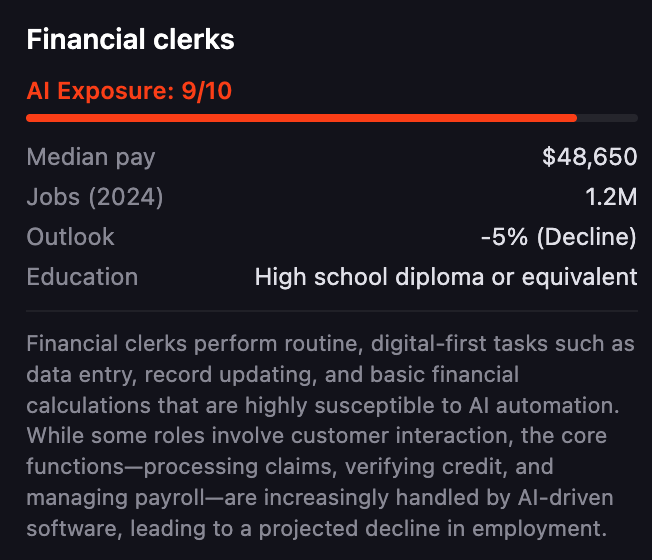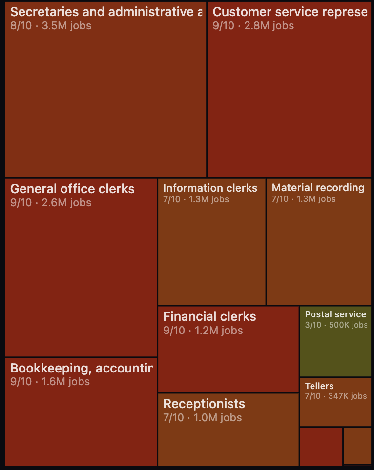 紧随其后的是客服代表、数据录入员和医疗记录专员,这些都是AI冲击的「重灾区」。