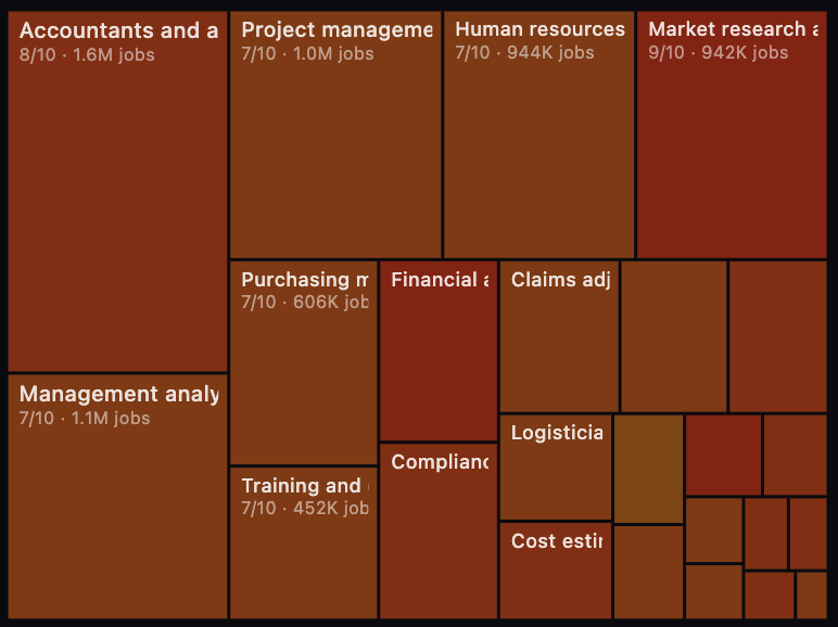 尤其是,「屏幕依赖型」的职业全线告急,基本都在AI的射程之内——