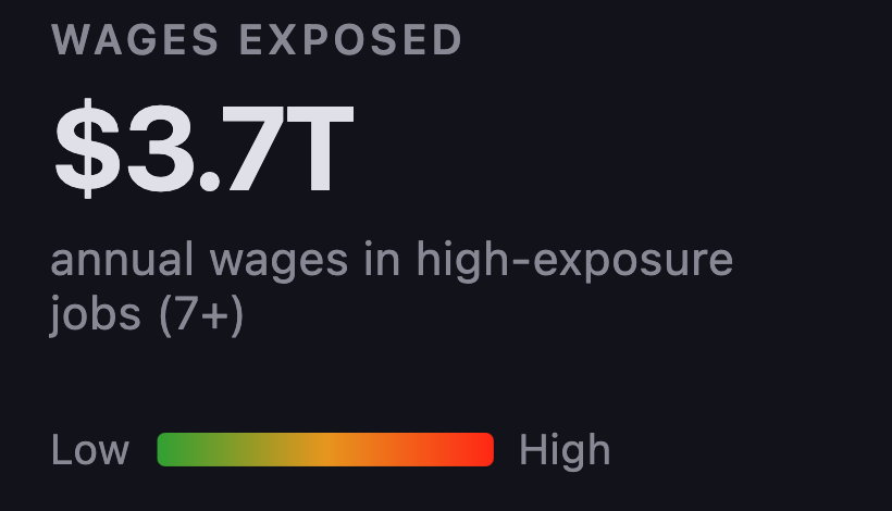 统计显示,约6000万个岗位处于高危区间,即42%风险评分在7分以上,年薪总额高达3.7万亿美元。