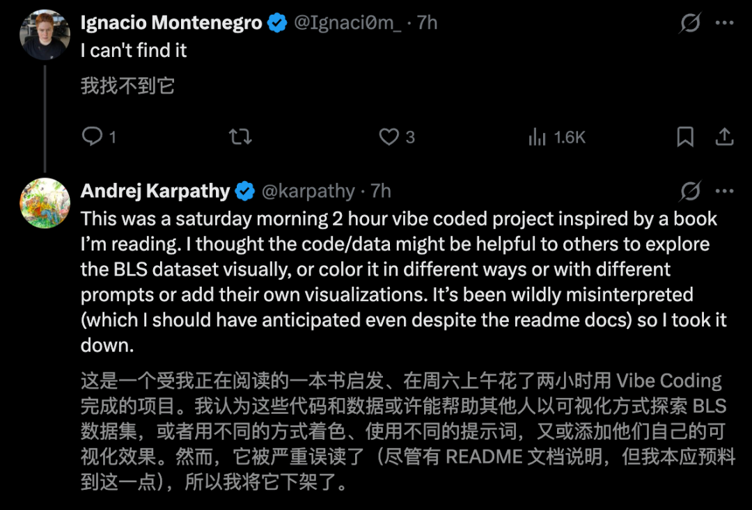 这一项目在全网爆红,然而上线不过几分钟,Karpathy就删除了帖子,现进入GitHub 404了。