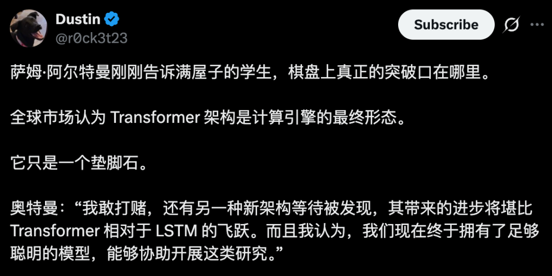 未来一定会诞生全新的底层架构,性能跃升不亚于当年Transformer对LSTM的降维打击。