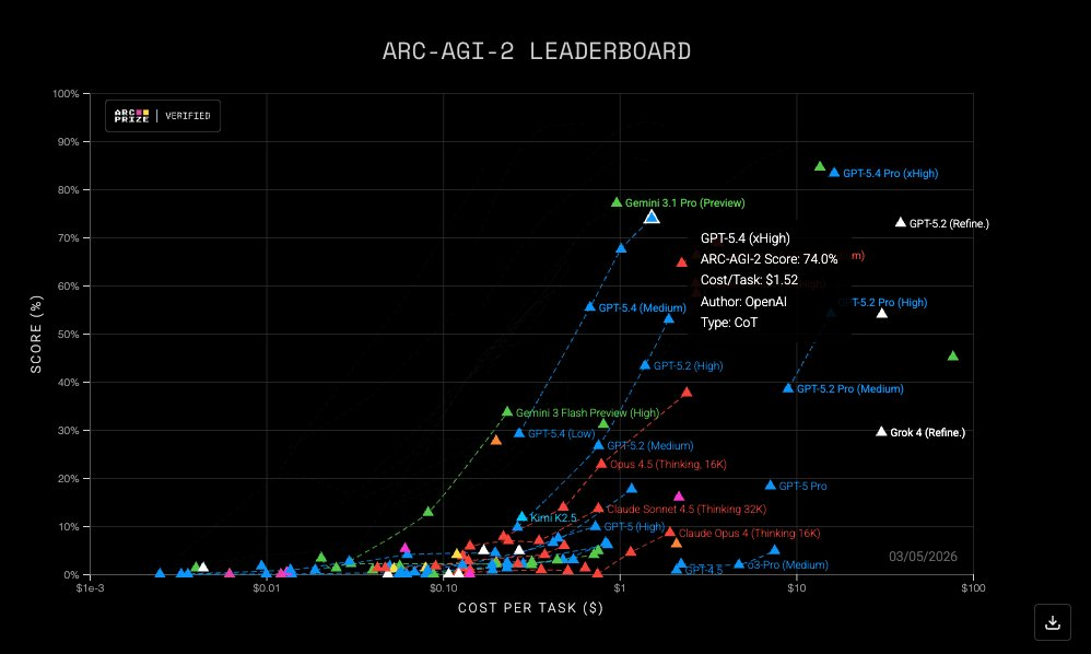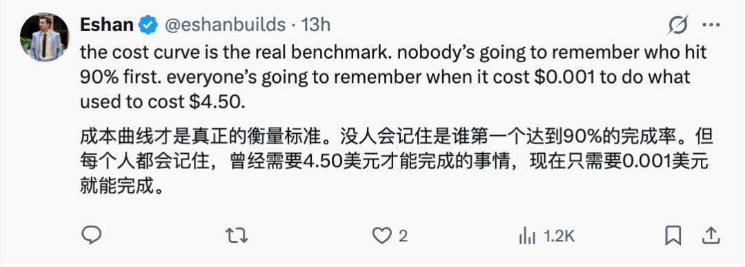 这也是GPT-5.4真正恐怖的地方:表面上看是token更贵,用得更多了,但在真实任务层面,AI推理效率正在出现指数级提升。