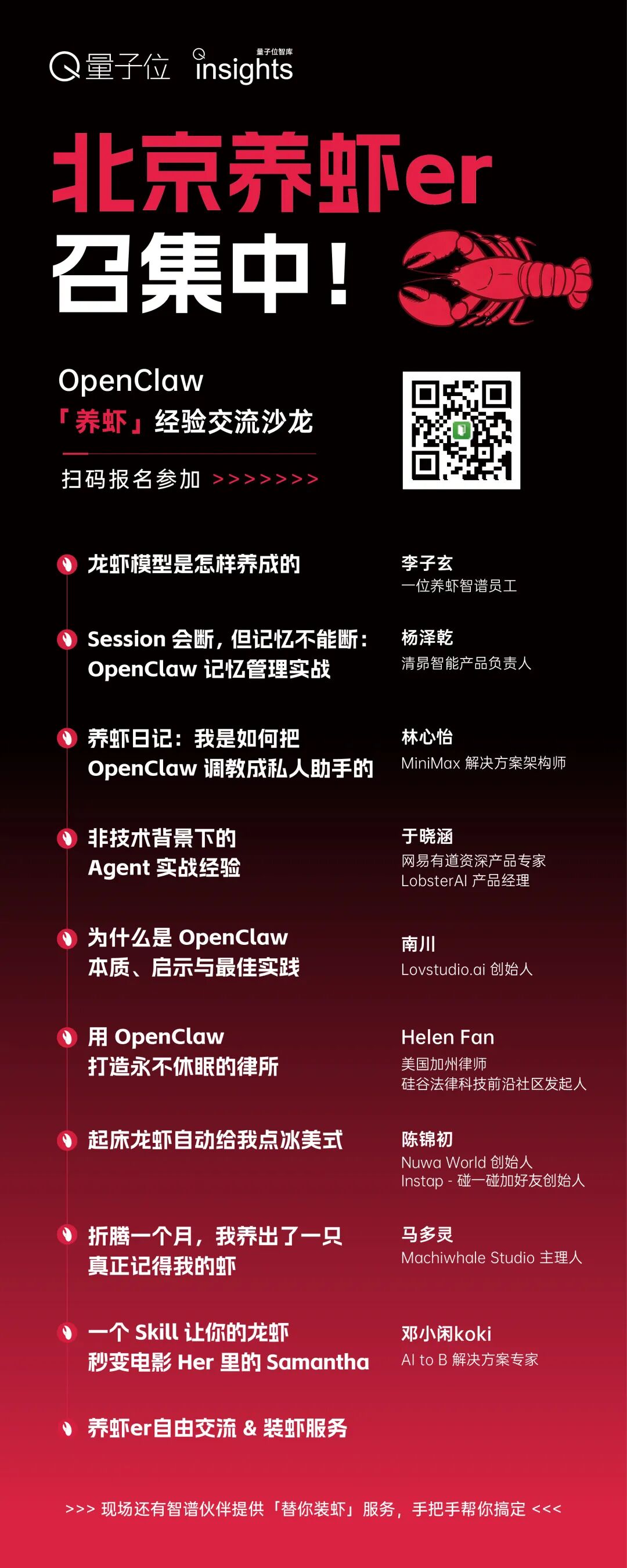从安装→上手→解决实际问题,从基础用法到场景落地,全流程干货分享。我们希望这场「养虾沙龙」,能给你的龙虾使用带来全新启发。✨