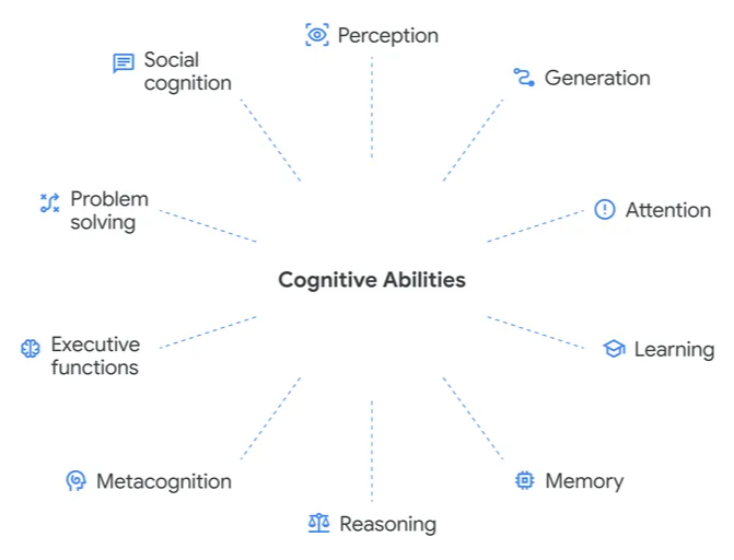 具体来说,要想评估AI和人类认知能力之间到底差多少,第一步就是要搞清楚:人类的认知都包括哪些关键过程。