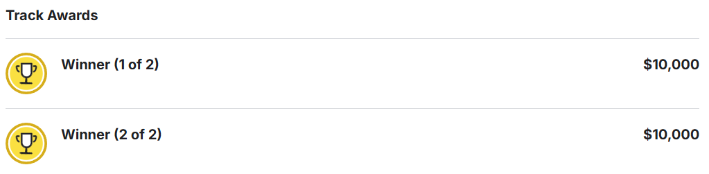 5个赛道各设2个一等奖,每个1万美元,这是对单项深度的奖励。
