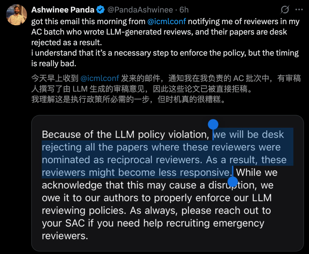 这完全是一个糟糕的决定,也不是处理AI审稿的好方法。