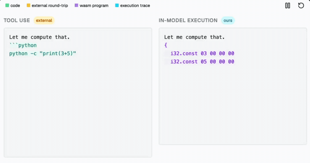 计算结果直接在模型的Token输出流中生成,不需要再等外部工具返回结果,而且全程透明。