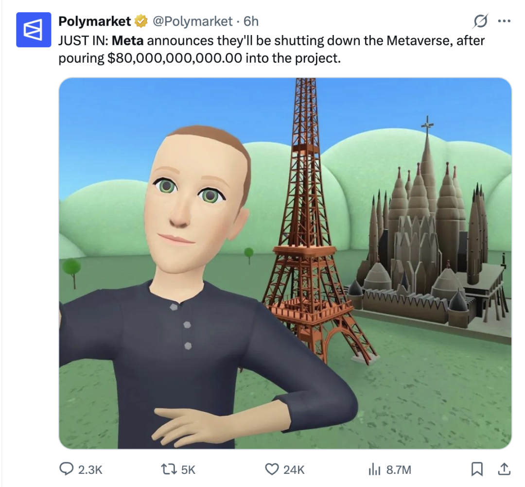 今天更是有媒体报道,Meta花费800亿美元、耗时5年多的元宇宙项目,将在6月关闭,800亿美元泥牛入海。