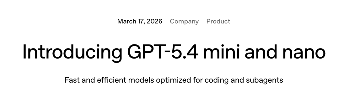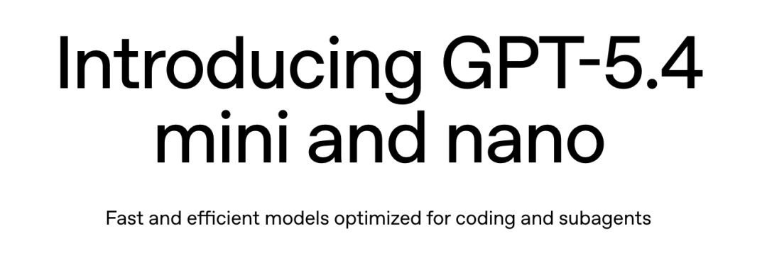 今天,OpenAI推出主打快速和经济的GPT-5.4 mini和nano模型,专门针对编程、计算机操作、多模态理解以及子代理(subagent)做了优化。