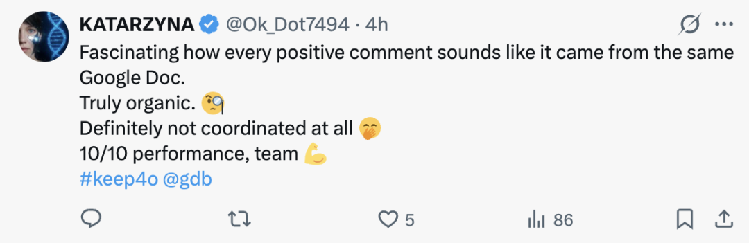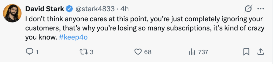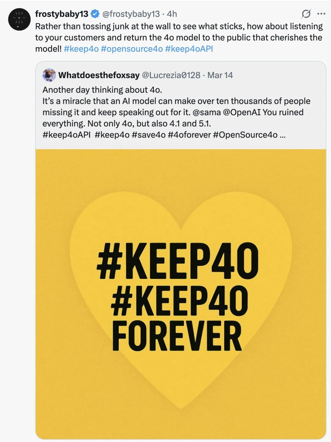 评论区里刷屏的,几乎全是带keep4o标签的:“让4o回来!”