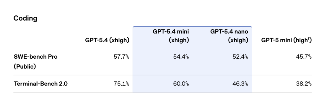 在实际评测中,mini和nano主要是针对编程和Agent任务做了优化。