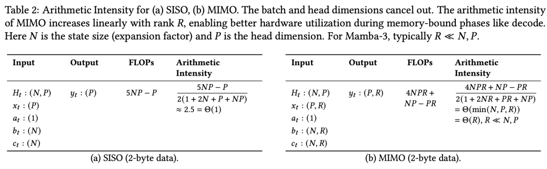 一组数据足以说明问题:Mamba标准SISO解码的算术强度仅约2.5 ops/byte,而NVIDIA H100的bf16张量核心能力是295 ops/byte。
