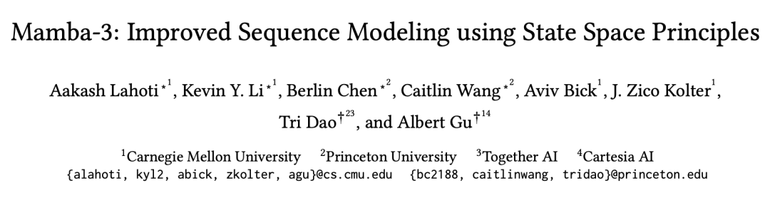 如今,由Albert Gu和Tri Dao联合指导、四位学生研究员主力操刀的Mamba-3,带着全新设计哲学登场。