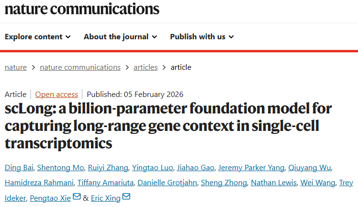 近日,MBZUAI、加州大学圣地亚哥分校(UC San Diego)等机构联合团队在 Nature Communications 发表研究成果scLong。