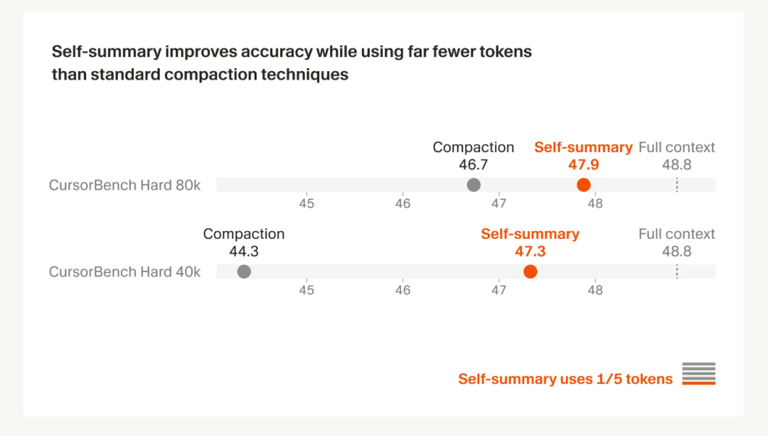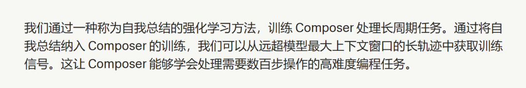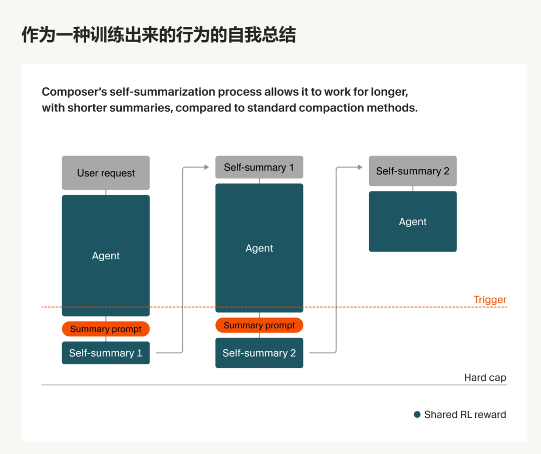 而Cursor的解法是——首先总结很重要,其次把这种总结能力内化成模型自己的能力也很重要。