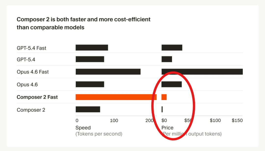 其最新编程模型Composer 2,不仅能力超越Claude Opus 4.6,关键是价格降了非常多。