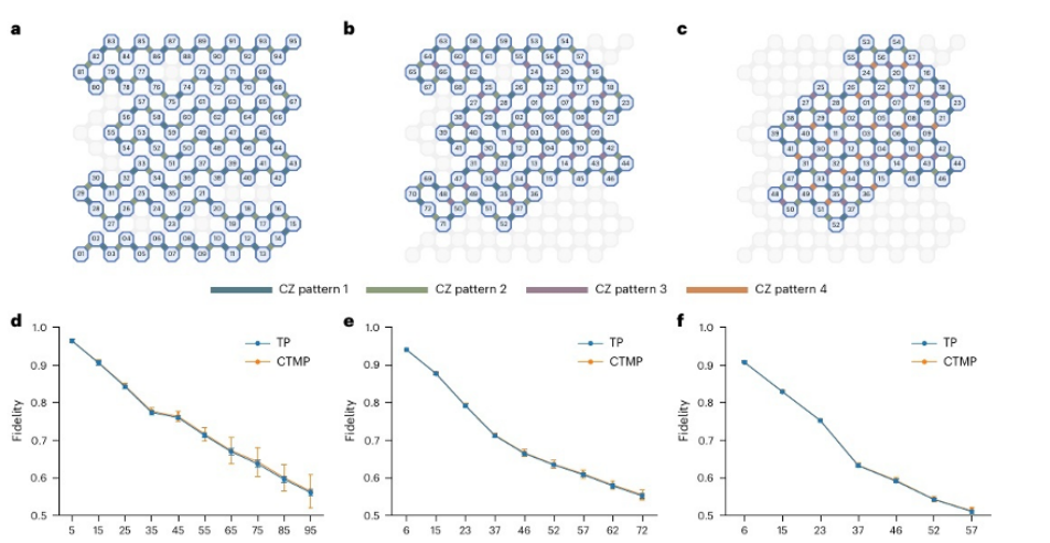 实验平台是 105 比特的“祖冲之 3.1”超导量子处理器。相较此前版本,器件在相干性、读出链路和双比特门控制等方面都有提升:空闲态能量弛豫时间的中位数提升到 49.7 微秒,读出保真度中位数达到 99.35%,并行校准后的受控 Z 门中位保真度达到 99.50%。这些改进为后续的大规模簇态制备提供了硬件条件。