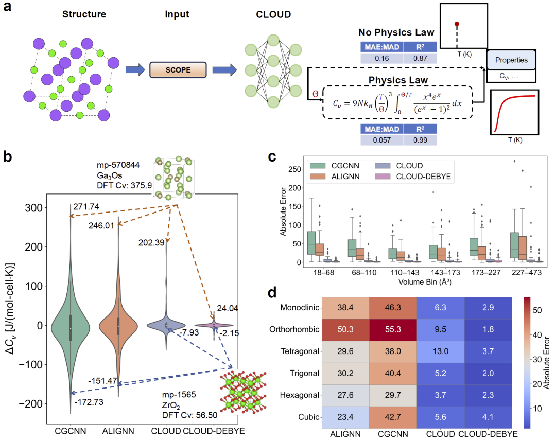 研究结果表明,CLOUD在多种材料性质预测任务中达到或超过现有方法,并在数据较少或分布外数据中表现更稳定。