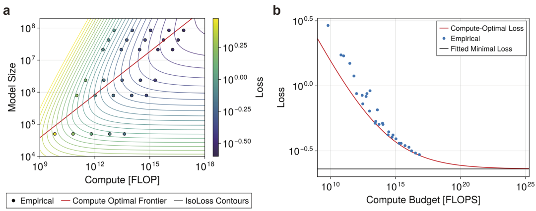 图3:CLOUD预训练过程中计算资源与最优模型规模关系。