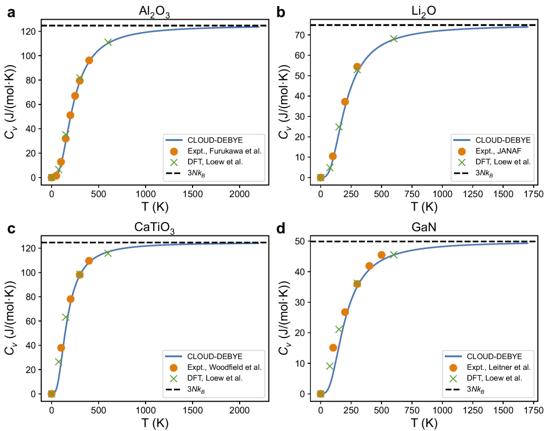 研究人员验证了模型在不同材料体系中的温度依赖热容预测,结果与实验和DFT计算一致,说明模型具有良好的物理一致性和泛化能力。