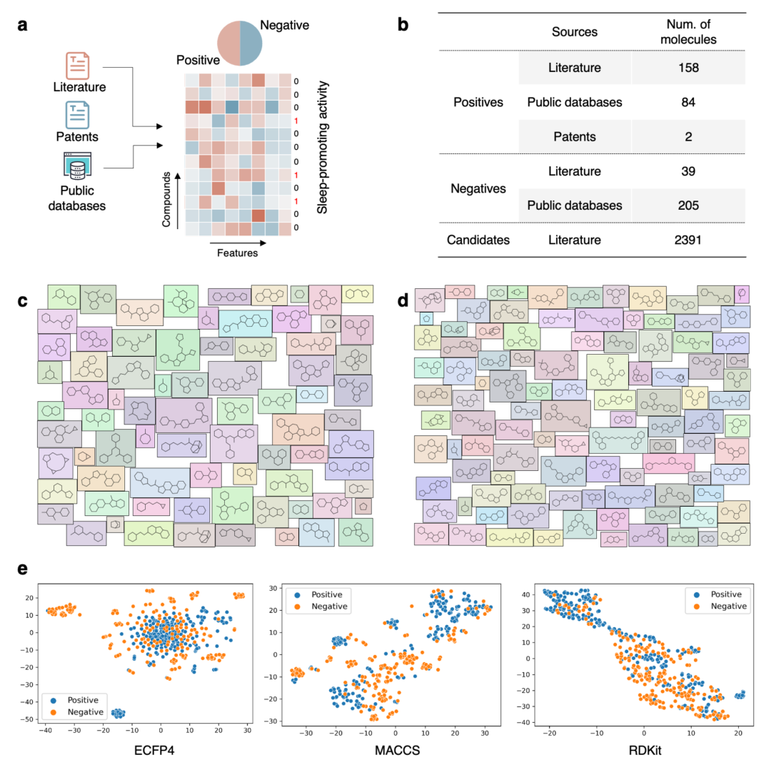 图1.训练数据集分析揭示睡眠促进成分与其他成分化学空间各异。