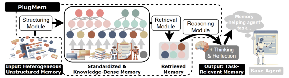 PlugMem将异构智能体经验组织为知识中心的记忆图,实现结构化检索与推理。