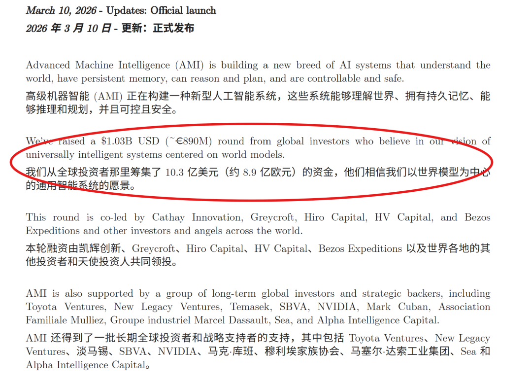 虽然仅成立4个月、团队仅25人,但AMI却在没有产品、没有收入、没有客户的“三无”情况下拿到了“AI领域有史以来规模最大的种子轮”——