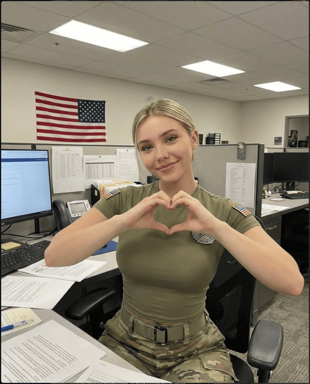 3月20日,《华盛顿邮报》披露,这个账号从头到尾都带着典型的 AI 破绽:美国陆军查不到Jessica Foster的服役记录。