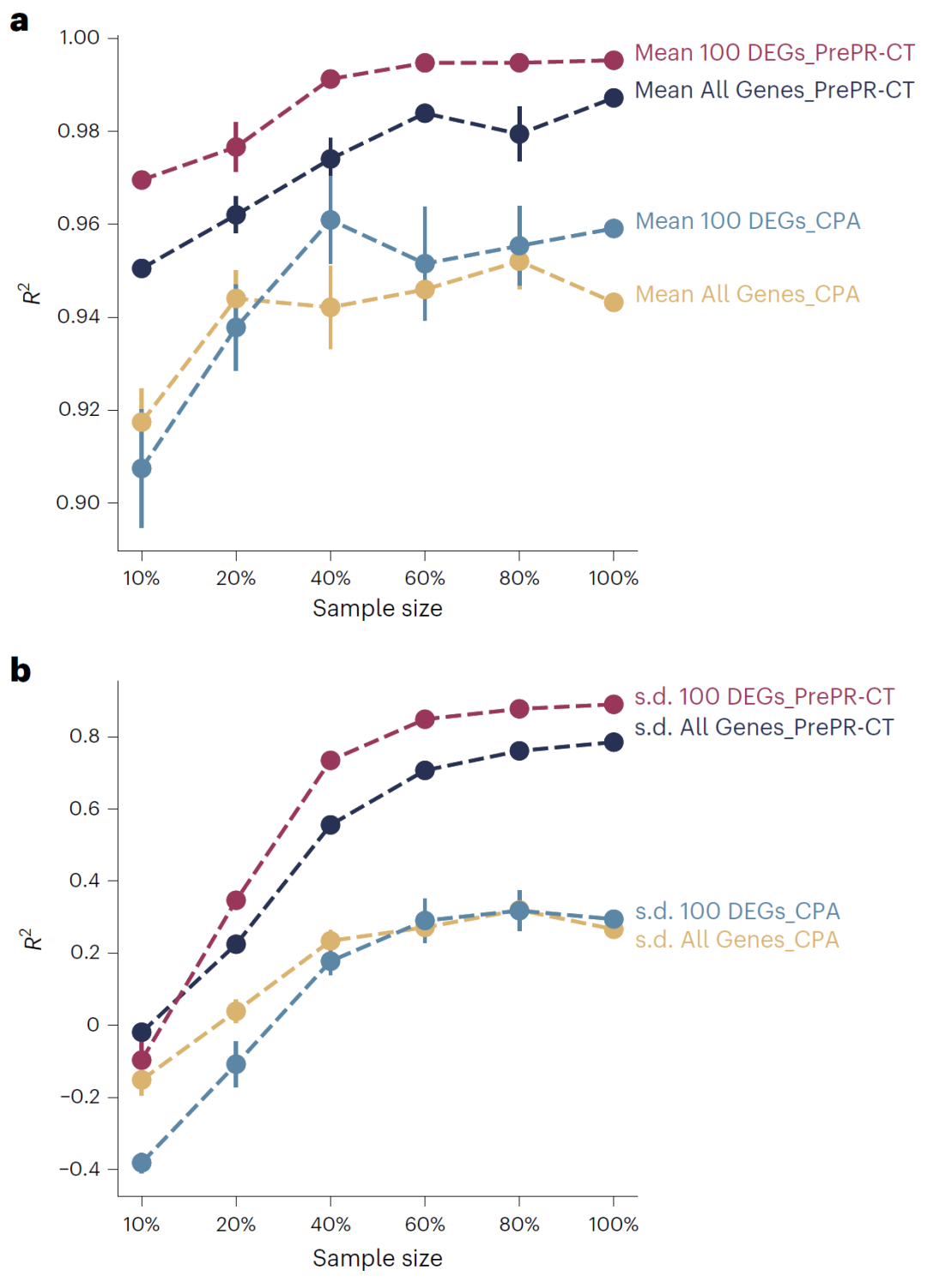 图2:PrePR-CT在未见过的细胞类型中准确预测单一扰动的影响。