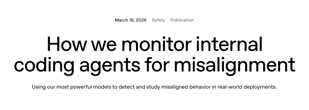 就在今天,OpenAI自曝:我们部署了一套基于「GPT-5.4 Thinking」的低延迟监控系统,在内部AI智能体疯狂试探安全底线的时候,它已经连夜拦截了上千次失控行为!