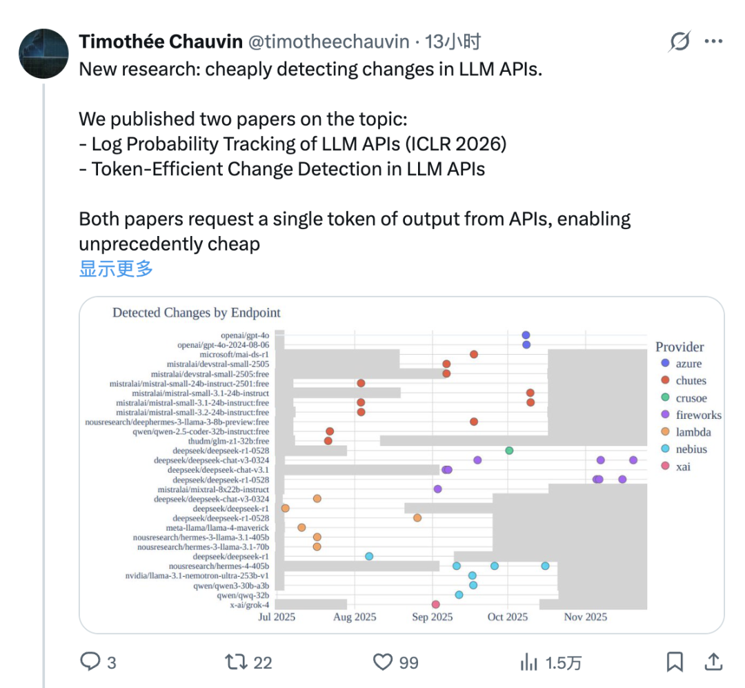 版本号没变,API供应商却悄悄偷换模型?现在这种小伎俩可以轻松被戳穿了。