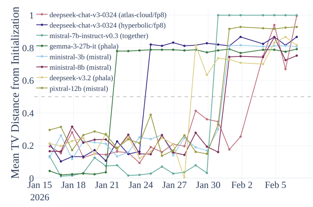 由于权重的微调、量化或架构变动都会导致这一分布发生偏移,对数概率成为了监测后台变动的最敏感指标。