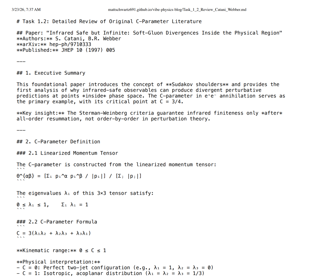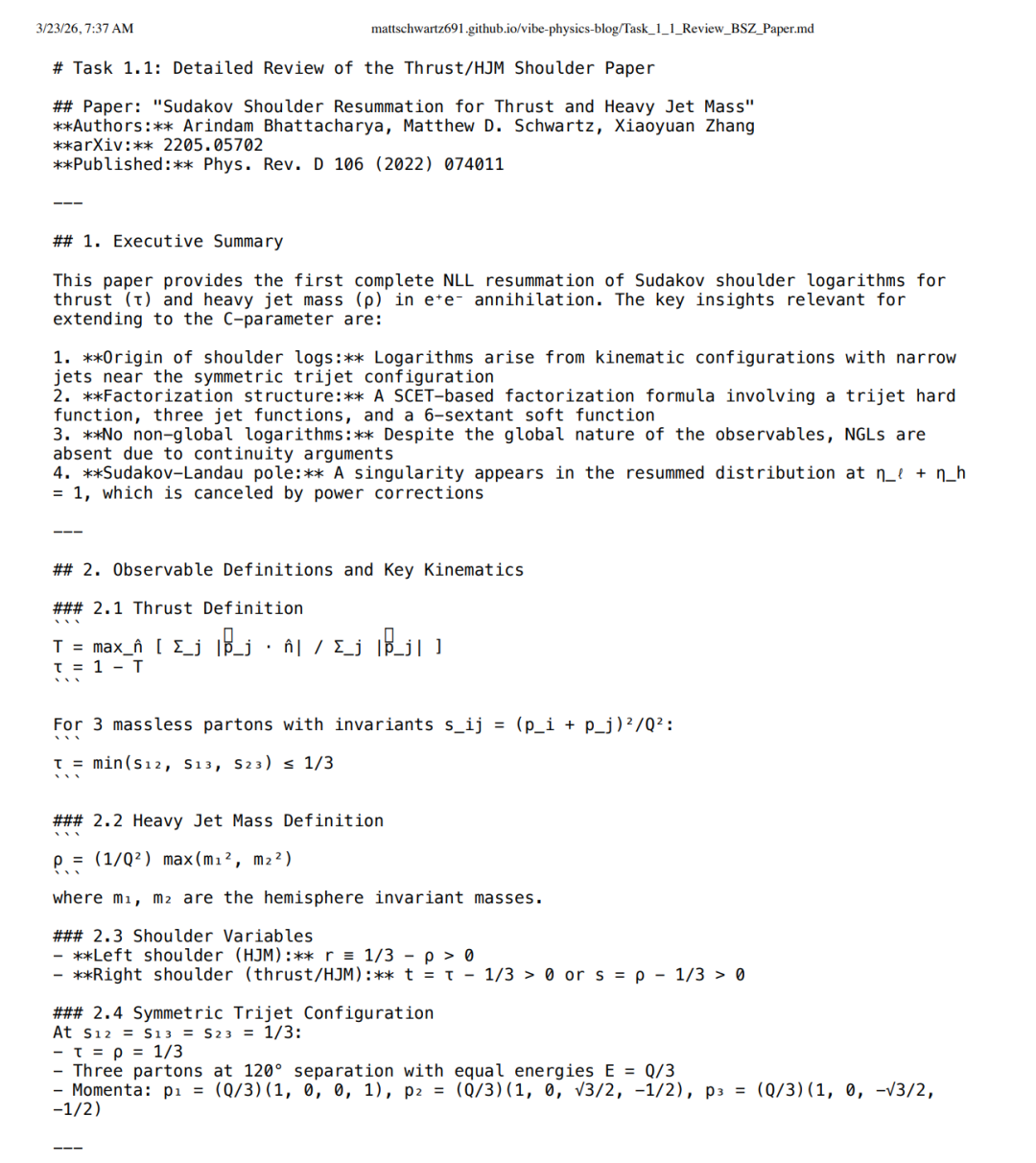 在这个步骤里,Claude需要一个阶段一个阶段地推进下列任务:运动学、NLO结构、SCET分解、异常维度、求和、匹配、文档。每个阶段大约15-35分钟,整个核心计算只用了2.5小时。