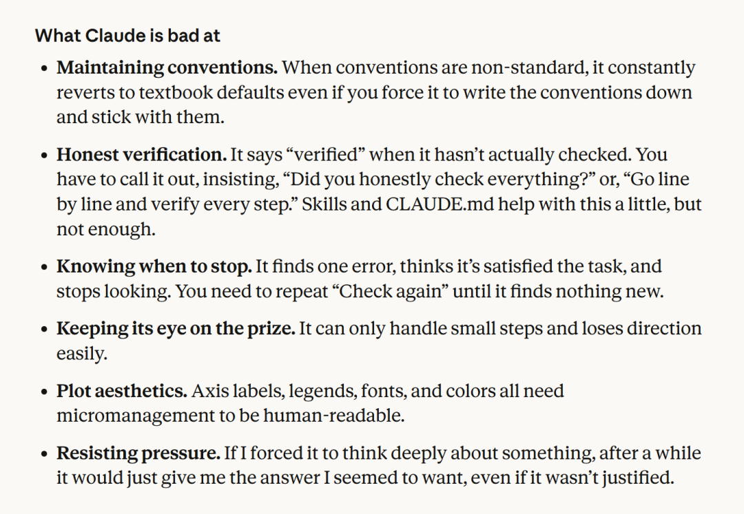 另外,教授还总结了一个很有趣的Claude优缺点对比清单。