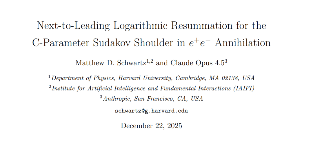 谁都没想到,短短两周后,一篇关于量子色动力学(QCD)中「C-参数苏达科夫肩峰重求和」的高难度论文就横空出世。