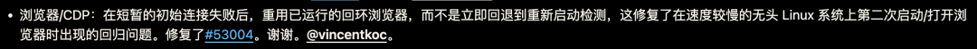 另外,Headless Linux 环境里第二次启动浏览器总是失败的问题也修掉了——原本一旦短暂连不上就直接放弃重新检测,现在会先复用已有的浏览器实例。
