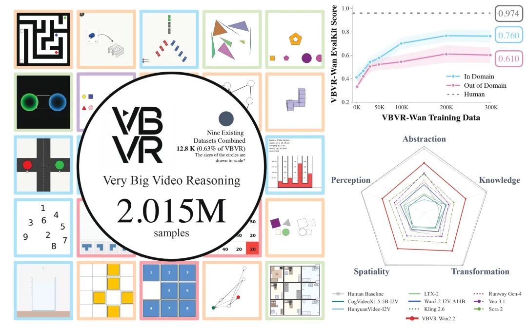 【新智元导读】AI视频生成已能「画得像」,但不会「想得对」。VBVR推出百万级视频推理数据集,首次系统评测模型对空间、物理、逻辑和抽象的推理能力,发现顶尖模型通过率仅68%,暴露其缺乏真实认知,推动视频AI从「视觉模仿」迈向「智能推理」。