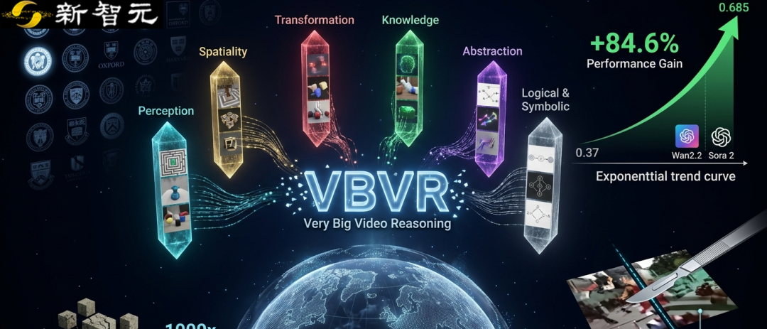 近日来自NTU、CMU、斯坦福、UCB等32所高校的研究员联合提出 VBVR(Very Big Video Reasoning),并不是一个单点 benchmark,而是一套一次性补齐所有短板的面向视频推理研究的完整基础设施。
