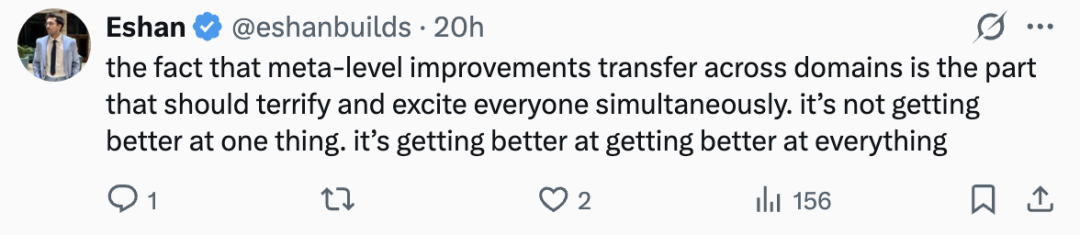 元学习真正让人既害怕又兴奋的,是元层面的改进能够跨领域迁移。这不是在某一件事上变得更厉害,而是学会了在一切事情上变得更厉害。